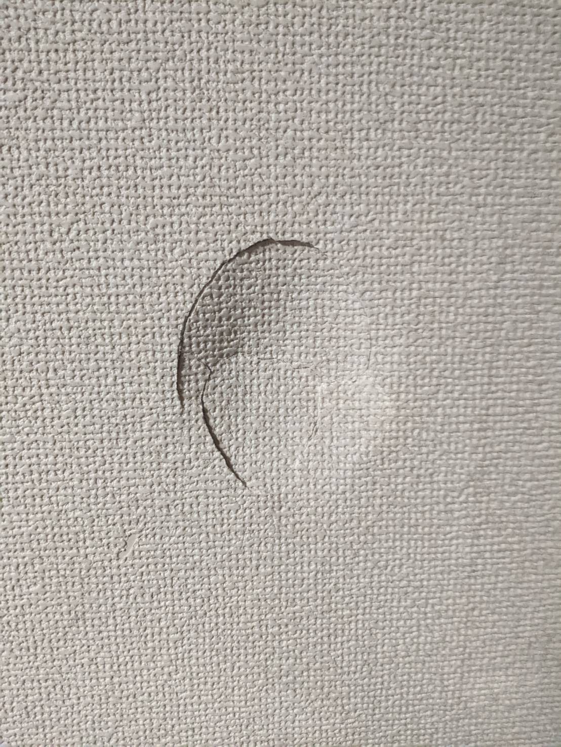 上の子がやっちゃいました💦 二人での留守番をする時間延ばす練習中に下の子と言い合いをし、イライラを残したまま二人とも物理的に距離を置いたのですが時間をおいても上の子のイライラが収まらず壁に頭突きをしたら…画像の様な事になったと、半泣きになりながら私に電話で教えてくれました。 本人は最初、私に怒られる思っていた様ですが怪我の有無を聞かれたりと思いのほか優しく話されて驚いたみたいです(笑) この壁は23年2月下旬にし、この件からは自傷行為がグンと減りました🤗