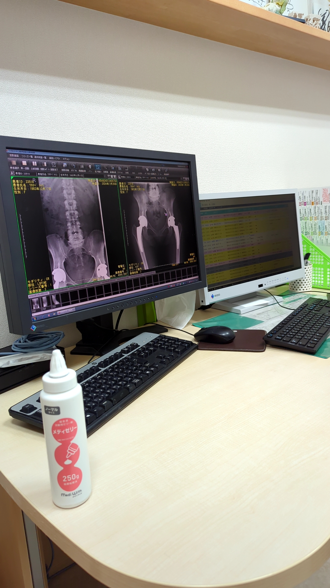 こんな感じで人工関節が入っています…私自身のレントゲン写真を盗撮(?₎してきちゃいました(笑)